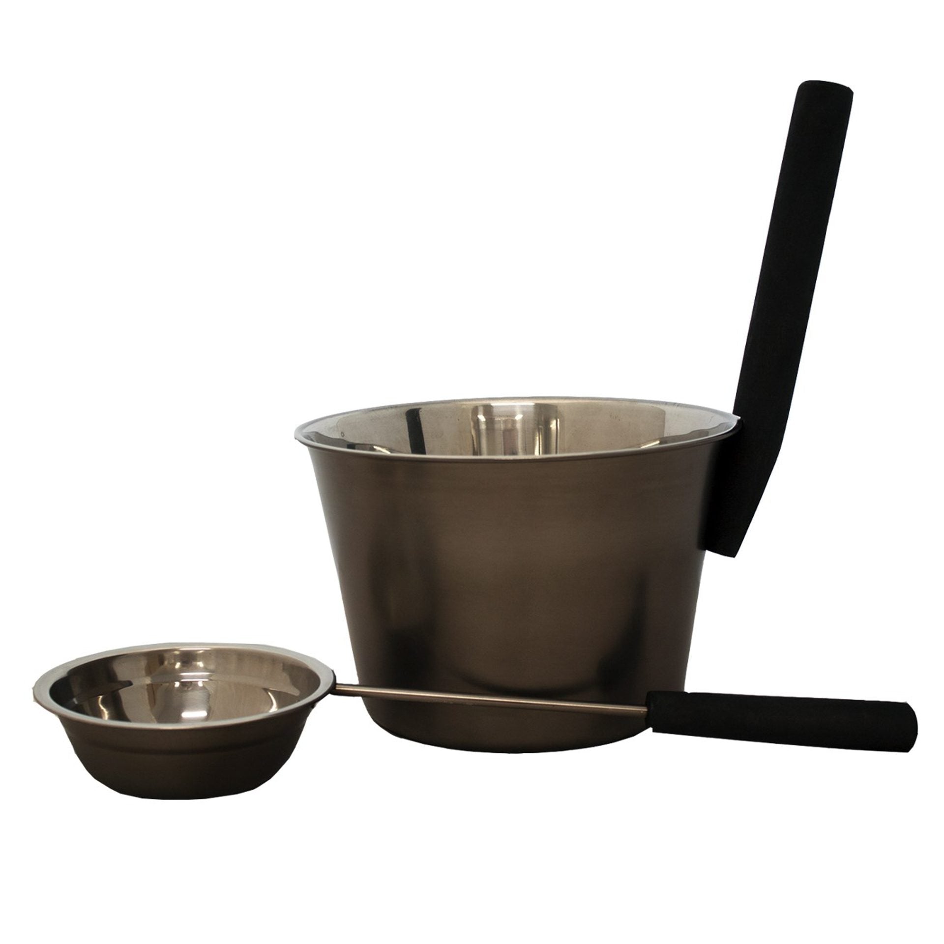 Ett stilrent och funktionellt bastuset med skopa och stäva i modern rökgrå design. Perfekt för dig som vill ge bastun en elegant touch samtidigt som funktionaliteten är i fokus.