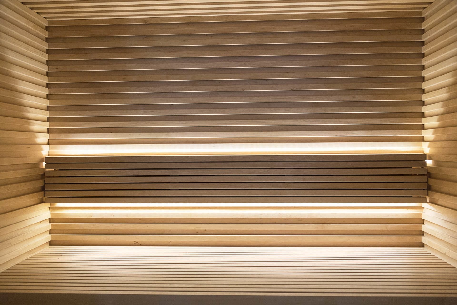 Nativas dekorativa profil skapar kontinuitet i rummet; horisontella väggpaneler breddar basturummet, medan den främre glasväggen breddar uterummet. Den här bastumodellen utgör grunden för våra viktigaste designprinciper som gäller för alla apparater: de är autentiska, skulpturala och moderna. Nativas särskilt behagliga dämpade belysning gör den till en mysig och behaglig plats att vara på.