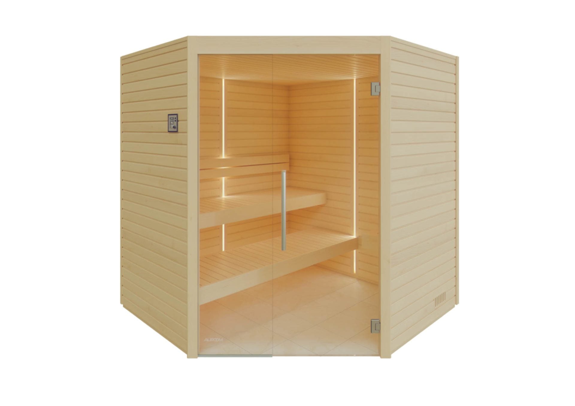 - Värmebeständiga LED-remsor på insidan av bastuväggarna