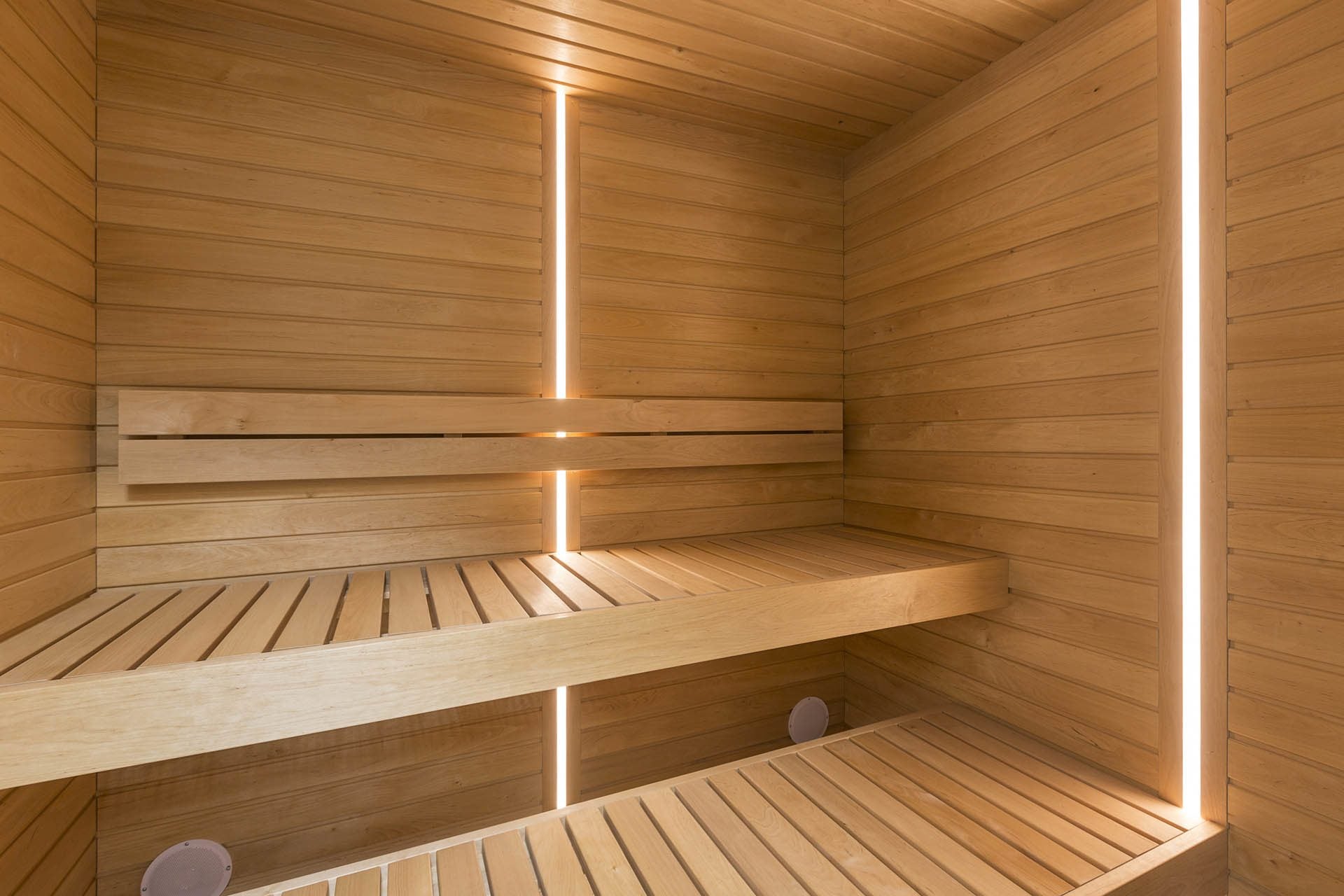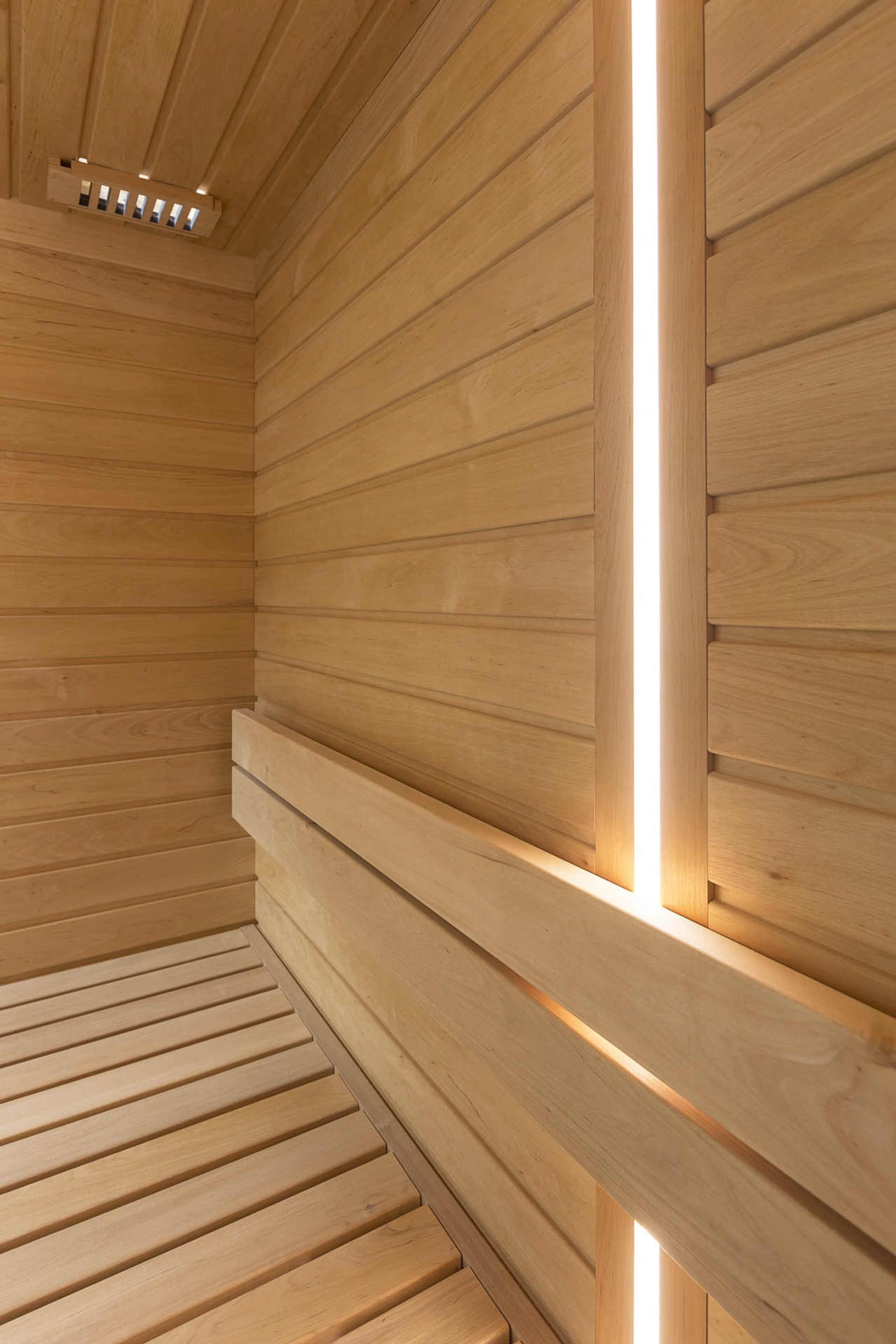 - Värmebeständiga LED-remsor på insidan av bastuväggarna