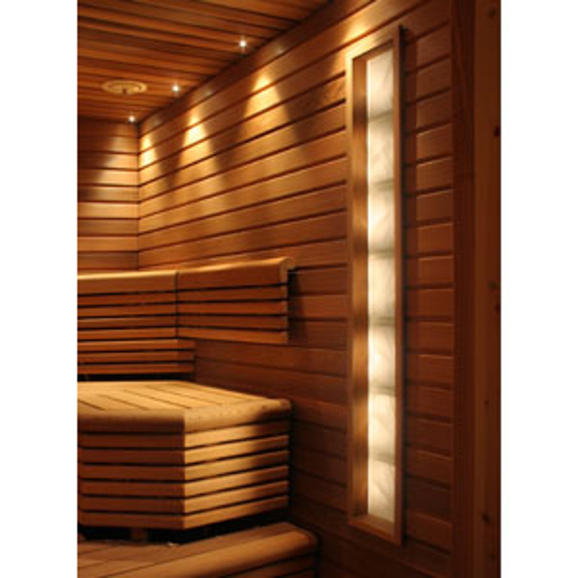 Välj bland en rad olika alternativ för bastubelysning. Upplysta bassänger, termometrar, väggar i krossat glas med färgskiftningar och till och med integrerade lampor i bastuaggregatet.